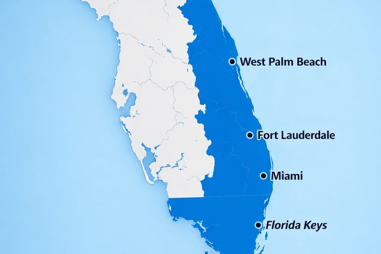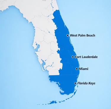 At Oasis Glass Frameless Shower & Mirror, we offer our specialized services throughout South Florida. From Miami-Dade, through Broward, Palm Beach, and Monroe County, covering the Florida Keys. We serve urban areas like Miami, Brickell, and Miami Beach; residential zones such as Weston, Miramar, Coral Springs, and Plantation; and the beautiful Florida Keys. If you’re in South Florida, we are ready to transform your space with custom glass solutions.